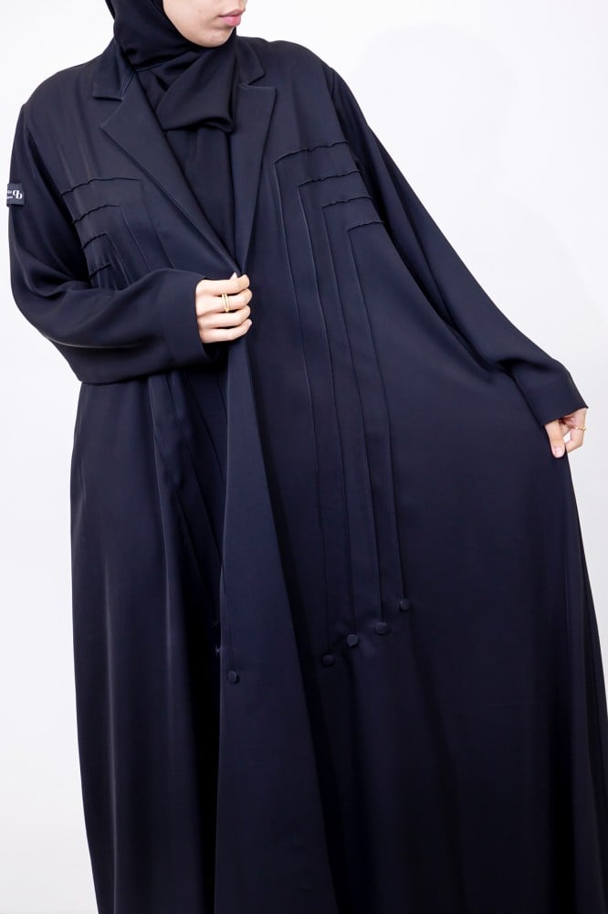 تأتي هذه العباية بتصميم مميز من عباية نص كلوش انترنت مع ازرار زينة بالاسود اسفل العباية