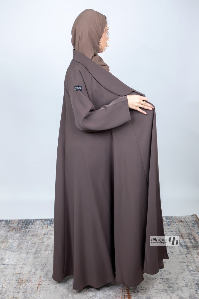 نوع المنتج : عباية كلوش ملون لون (بيج غامق) رمادي قماش لمياء