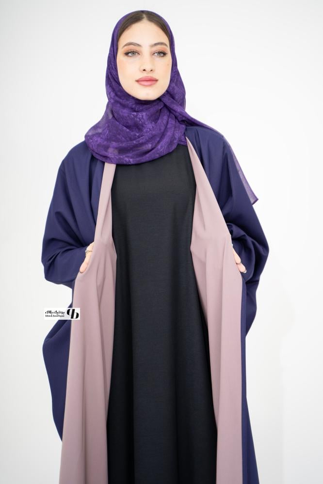 عباية دبل فيس وجهين قماش دبل فيس أزرق زهري